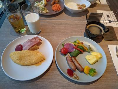 ホットミールはそれほど多くなかったものの、バランスよくラインナップされてて良い朝食でした。できたてのオムレツが美味しかった🥳